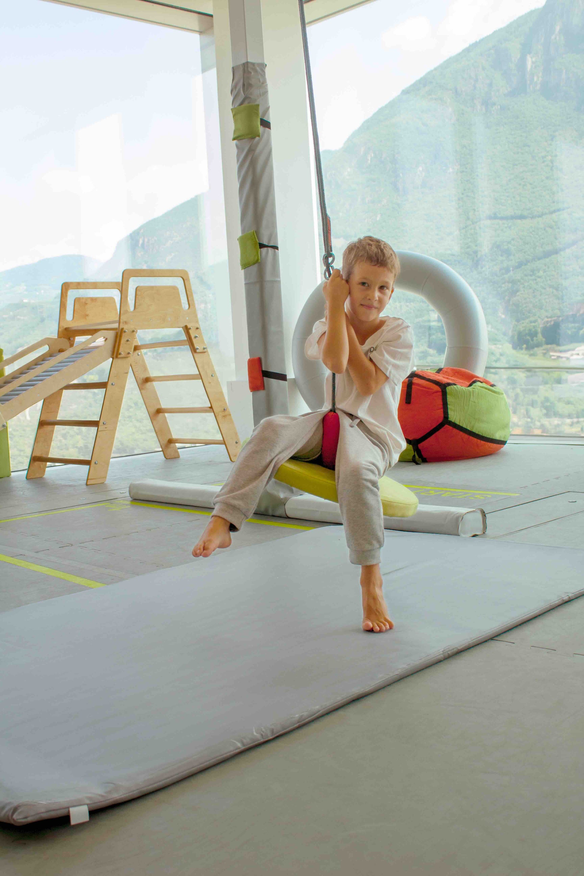 Die Scheibenoberfläche ist mit Schaumstoff und weichem Polyestergewebe überzogen und sorgt so für ein angenehmes Tasterlebnis. Die Einzelseilstruktur bietet eine stabile Basis für die sensorische Integrationstherapie mit einer Tragfähigkeit von 60 kg für Menschen unterschiedlicher Größe.