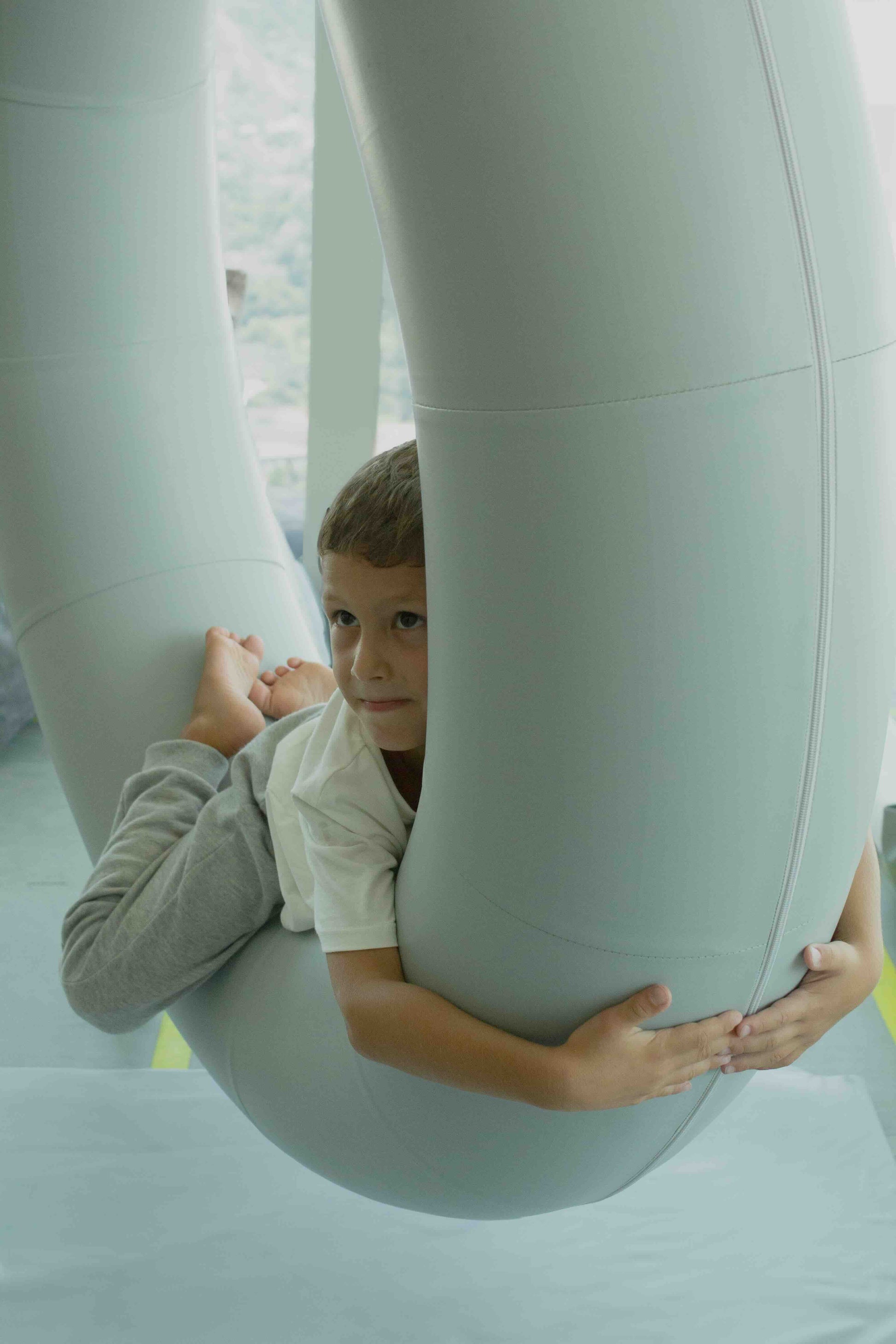 Das innere Teil des „Donuts“ stellt ein stabiler Gummischlauch dar, dessen Größe sich leicht an die spezifischen Bedürfnisse des Nutzers anpassen lässt. Diese Tube ist mit einem strapazierfähigen Kunstlederbezug überzogen und sorgt so nicht nur für ein angenehmes Tastgefühl, sondern auch für einen optimalen Halt. Die natürliche Elastizität des Schlauchs sorgt für einen kontrollierten Rückprall und fördert so eine wirksame Stimulation des propriozeptiven und vestibulären Systems. Sicherheit steht an erster Stelle und der Schlauch ist dank seines starken und langlebigen Materials so konzipiert, dass er Belastungen standhält.