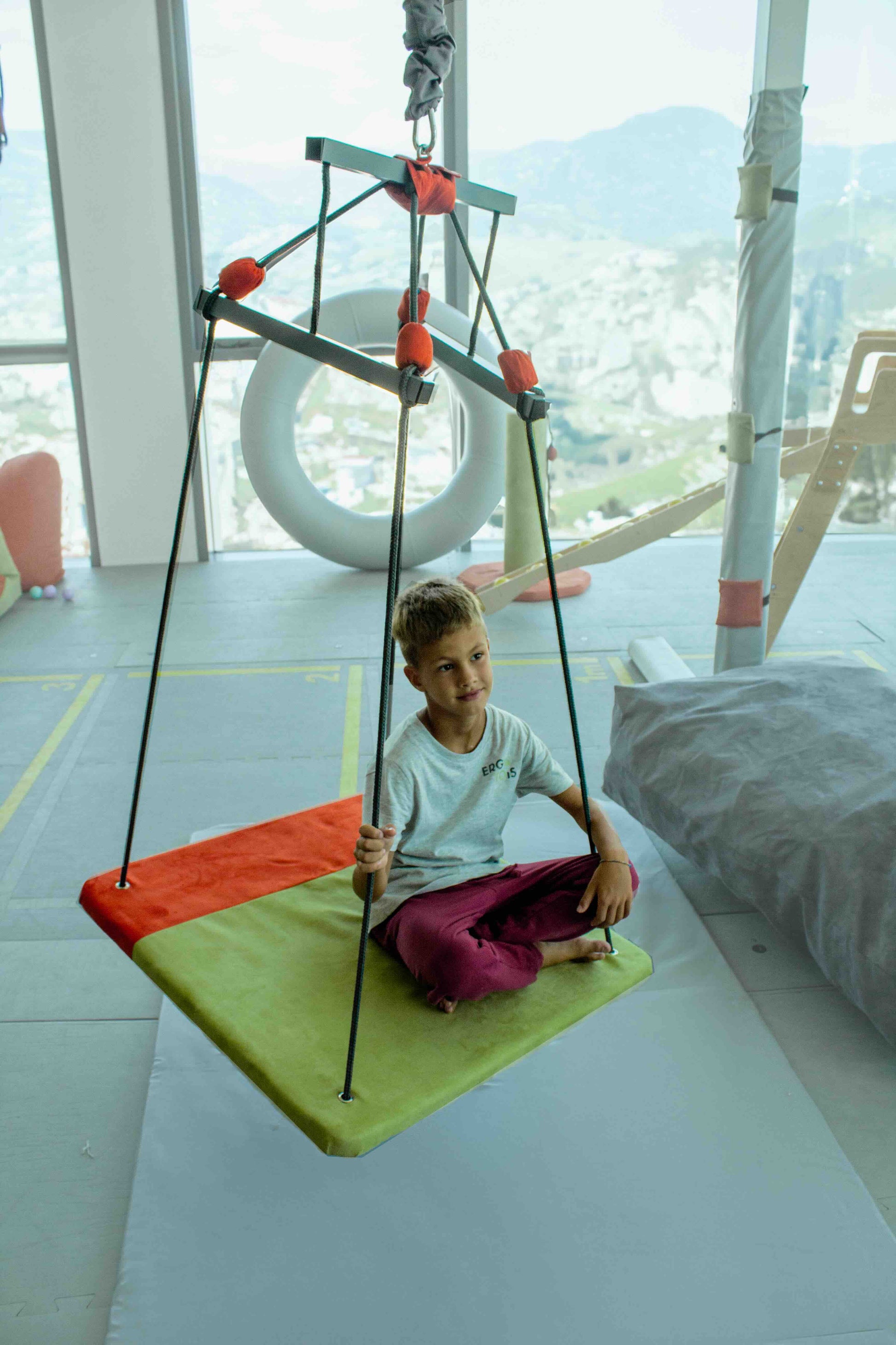 Entwickelt, um ein sicheres und komfortables Sinneserlebnis zu gewährleisten, fördert es Gleichgewicht, Koordination und adaptive sensorische Integrationsreaktionen. Die robuste und tragbare Struktur macht es ideal für den therapeutischen Einsatz und das 4-freie Kordelsystem mit oberen Schlaufen ermöglicht die Erzeugung variabler Schaukelbewegungen zur Bereicherung des vestibulären Sinneserlebnisses.