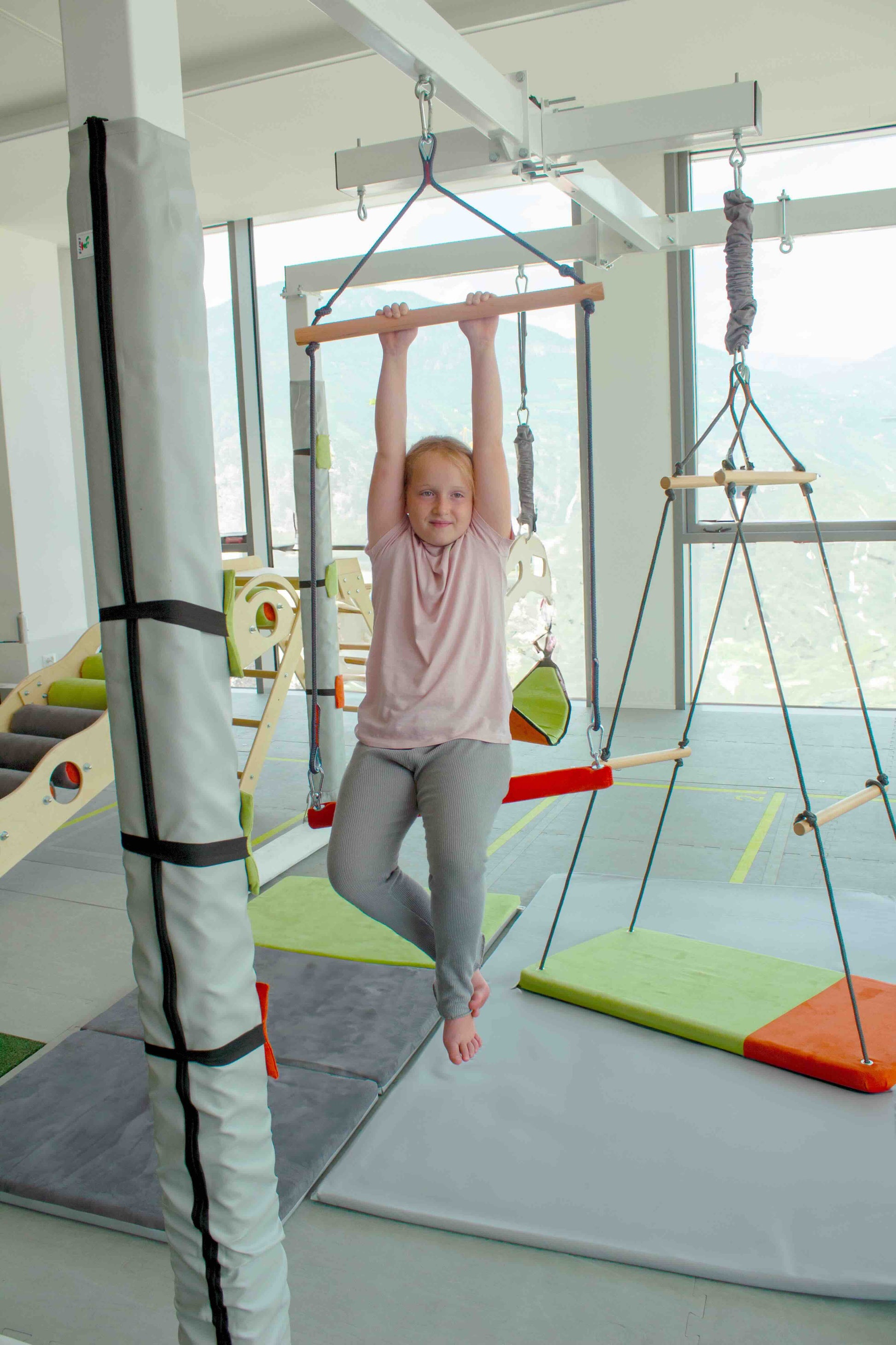 Dieses vielseitige sensorische Werkzeug ist nicht nur ideal für therapeutische sensorische Integrationsumgebungen, sondern eignet sich auch hervorragend dazu, jeden Wohnraum in eine Möglichkeit zur freien Bewegung zu verwandeln. Dank der Doppelstange bietet das Double Trapeze Sicherheit und ermöglicht es den Menschen, sich Herausforderungen selbstbewusst zu stellen und unterstützt so ihre motorische Entwicklung.