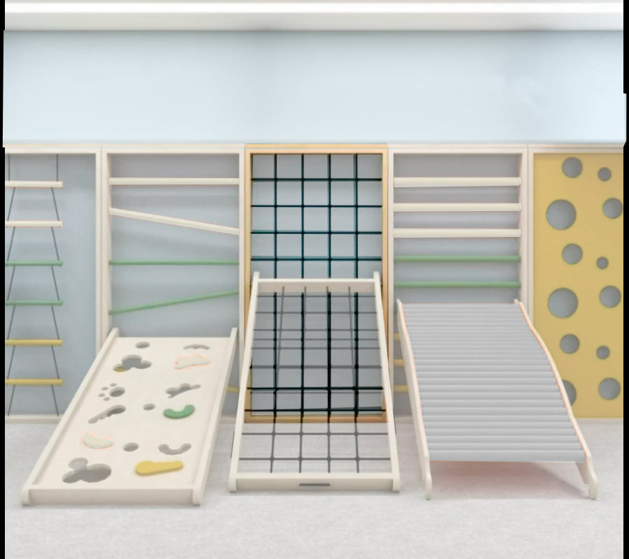 La versatilità di questa cornice consente di personalizzare l'ambiente, creando configurazioni uniche per stimolare la coordinazione, l'equilibrio e la forza. Ideale per contesti terapeutici, educativi o ludici, questa cornice offre una soluzione completa per arricchire le attività motorie e sensoriali in modo divertente e coinvolgente.