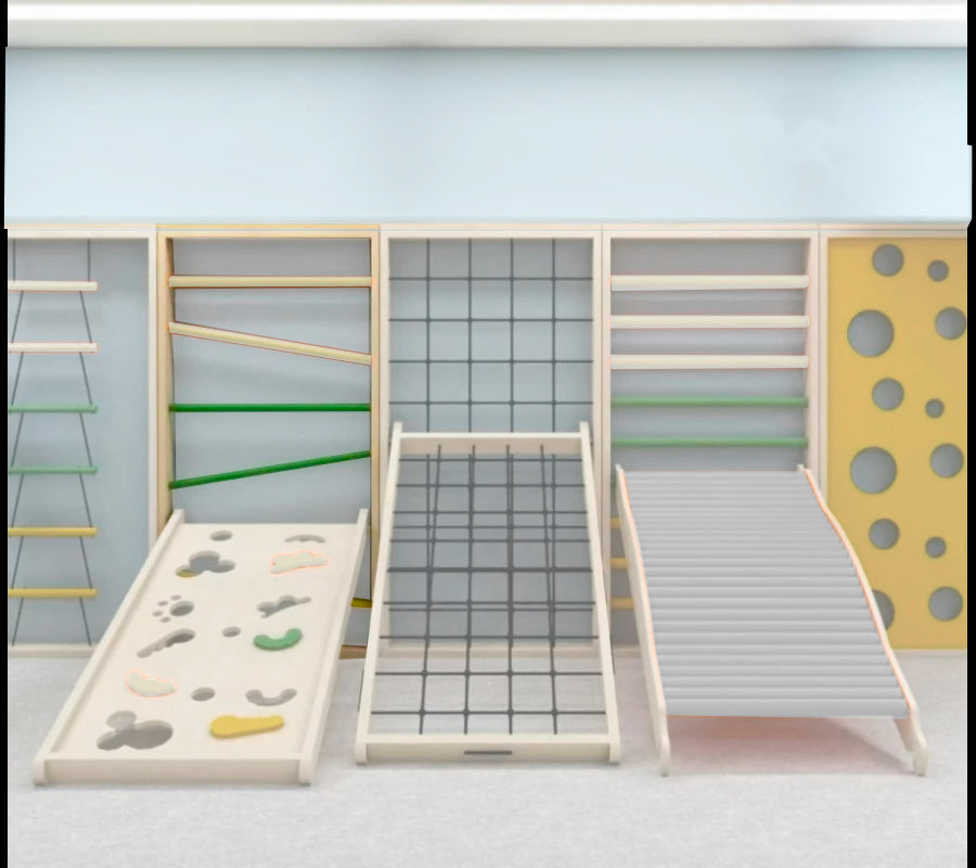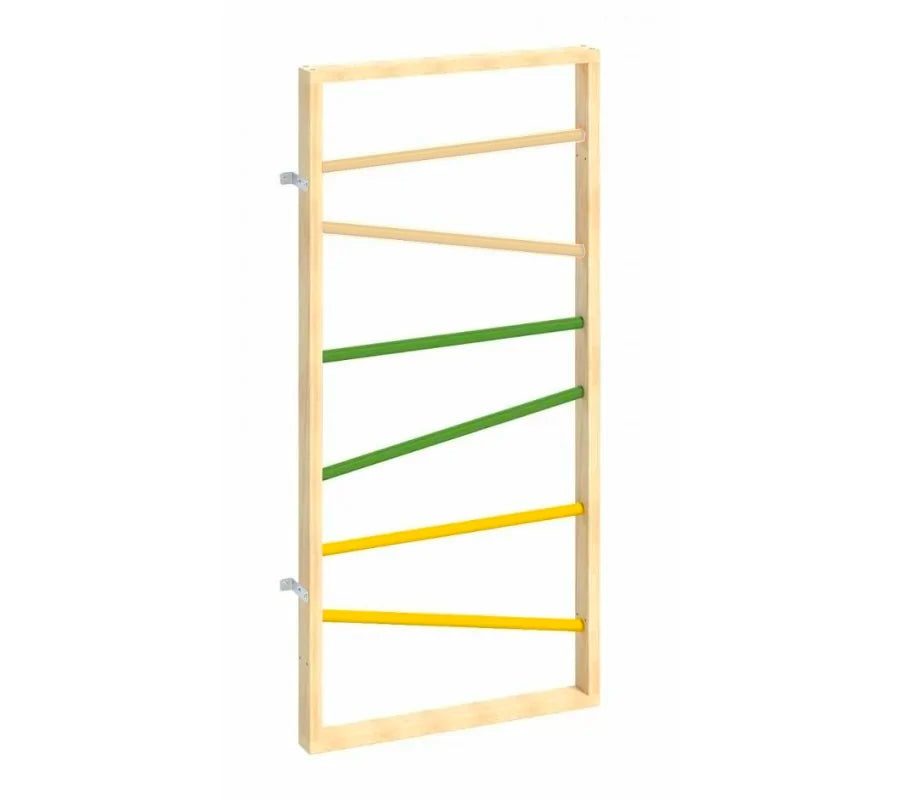 La Cornice Scala a Gradi Inclinati si presta a essere combinata con altri dispositivi per creare configurazioni personalizzate, permettendo una varietà di attività motorie e sensoriali. Puoi facilmente agganciare altri dispositivi come uno scivolo a rulli piccoli, una rampa di arrampicata o una cornice con scala in corda, creando così un ambiente dinamico e stimolante.