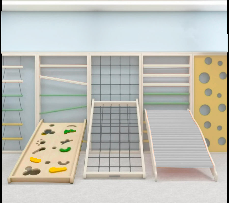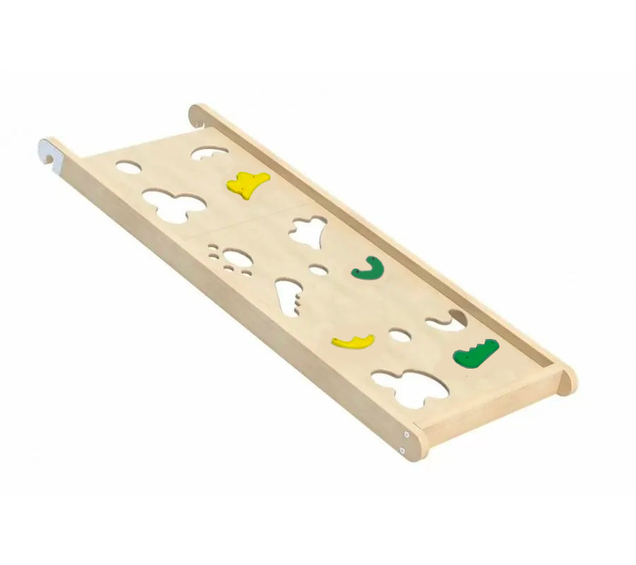 Realizzata con materiali resistenti e duraturi, questa rampa offre un'ampia gamma di opzioni per l'arrampicata, stimolando lo sviluppo della forza muscolare, del controllo posturale e della coordinazione motoria. Grazie alle prese di arrampicata e ai buchi appositamente progettati, offre diverse opportunità di sfida e varietà, adattabili alle esigenze individuali.